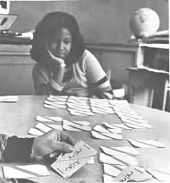 | In this game of Concentration the object is to turn over two fraction playing cards with equal fractions. The player in the foreground got lucky using the strategy of selecting cards for halves, since these cards have only the fractions 0/2, 1/2, or 2/2. | |||||||||||||||||||||